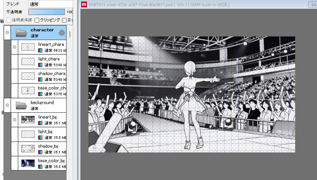 着彩機能を使用すると、線画と下塗りから作品のイメージに沿った自然な着彩が可能です。ブラシ塗り・アニメ塗り・水彩塗りなど多彩な表現に対応し、各レイヤーに分けてのPSD出力も可能です。プロの制作現場でも活用できる高品質な着彩を効率的に実現できます。