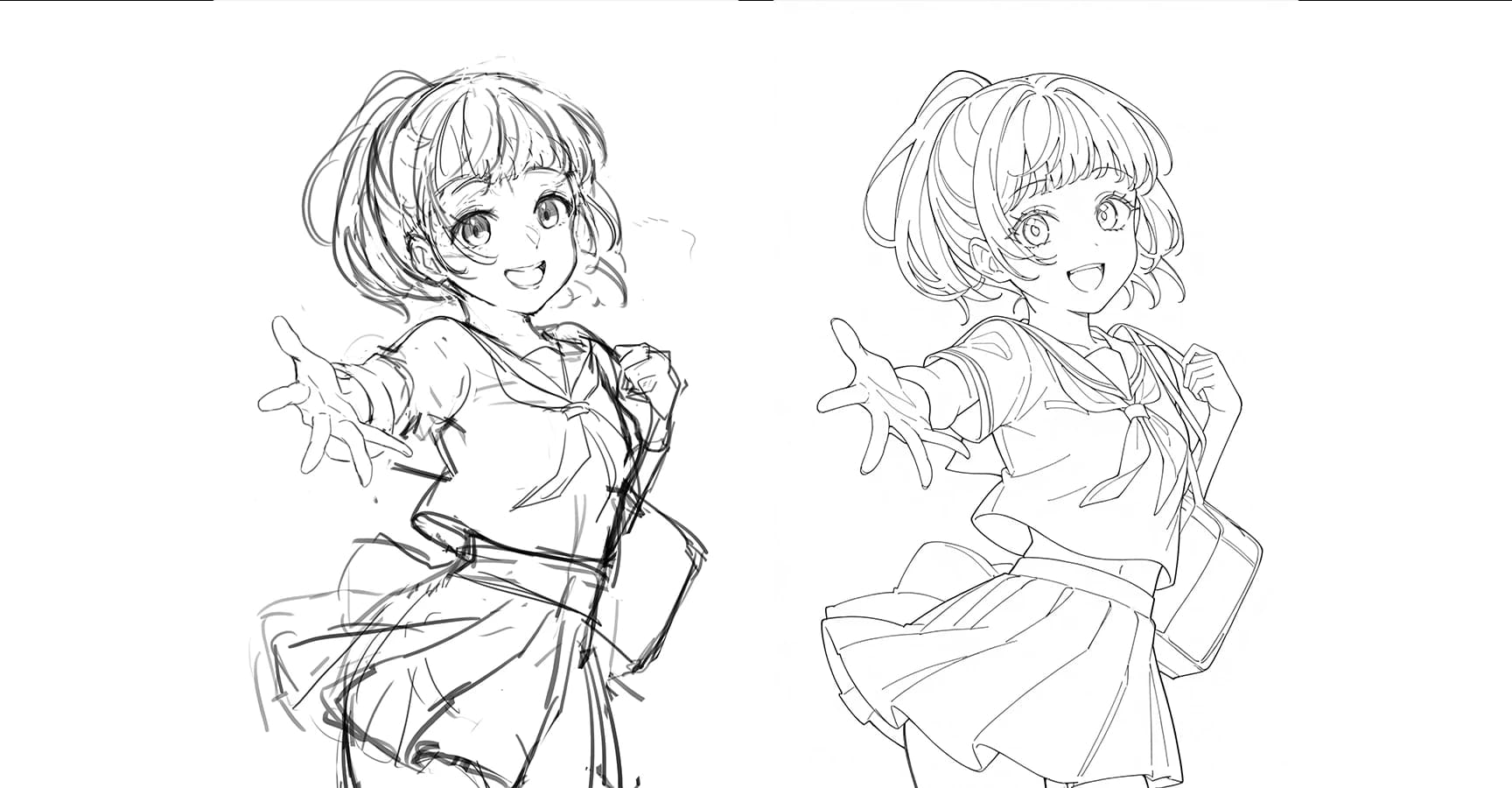 Compared to the inking function, this tool can generate clean lineart from even loosely drawn rough sketches. It's ideal for refining a draft to explore artistic direction or for checking how AI interprets your sketch style as reference material.