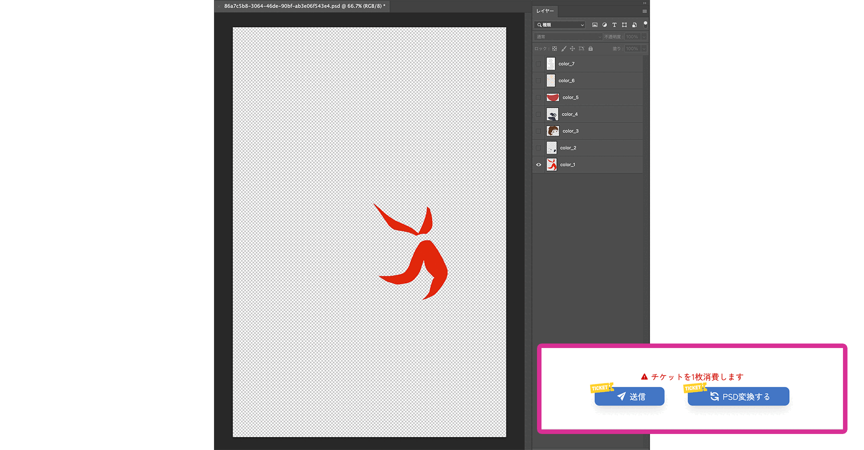 Click the 'Submit' button and wait a few seconds. (This will consume 1 ticket.) Once converted, you can also export the result as a PSD file.